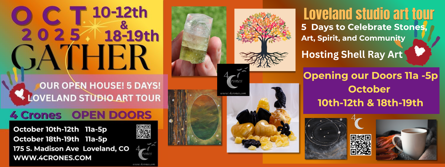Loveland Studio Art Tour Featuring Shell of Shell Ray Art / Hosted by 4 Crones / October 10th-12th & October 18th & 19th /11a to 5p