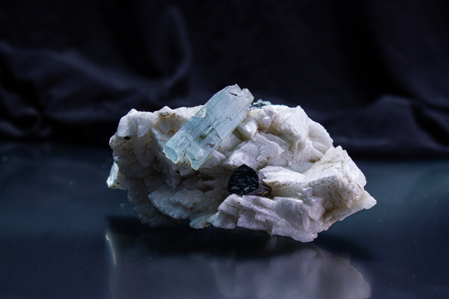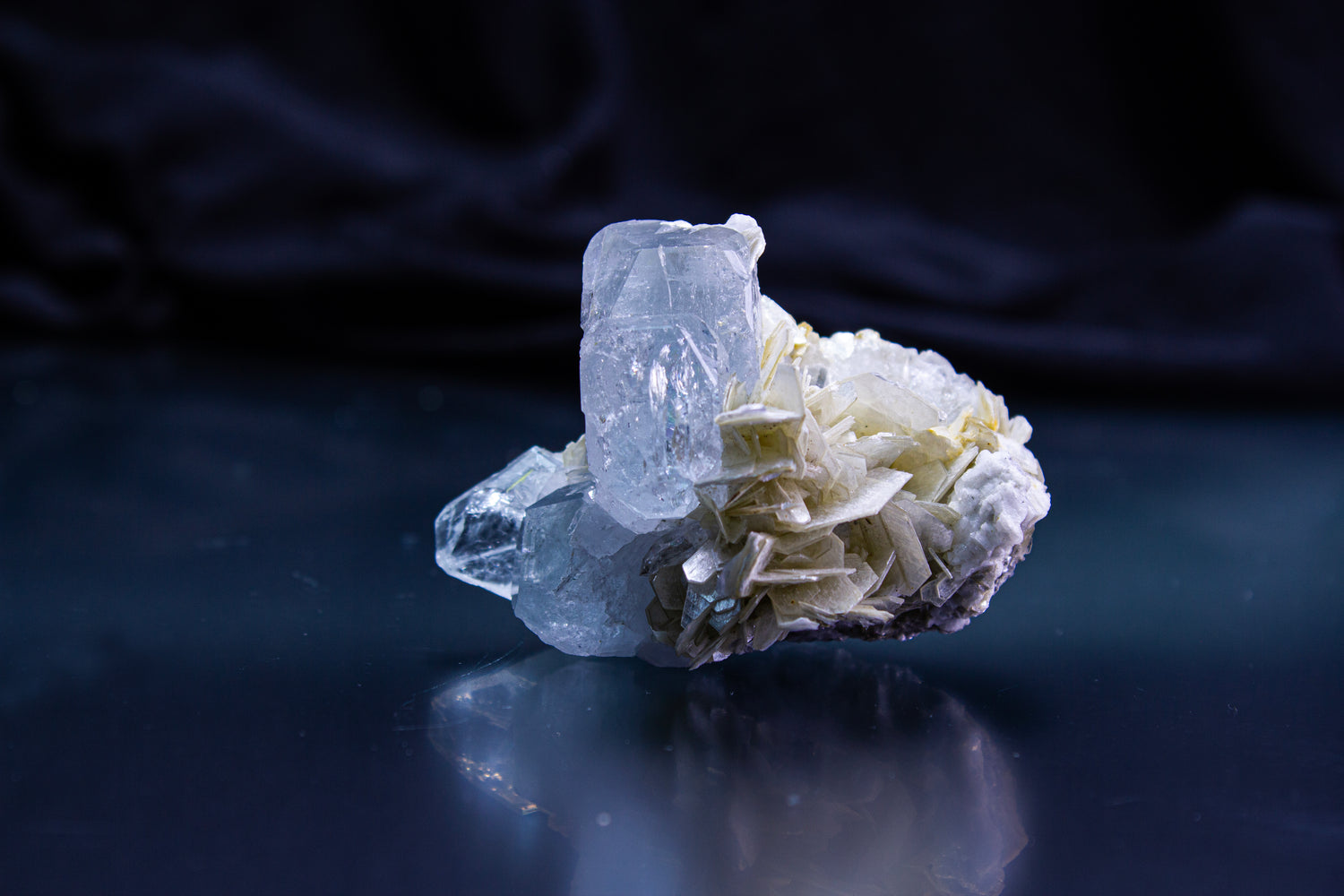 Its name, aqua marina“ water of the sea” speaks to both its origin and its essence. A variety of beryl, colored by traces of iron, Aquamarine forms slowly within granite pegmatites, developing its luminous clarity over time. There is no rush in its making… and it reminds us there is no rush in ours.